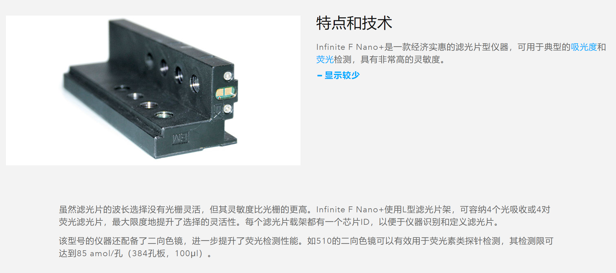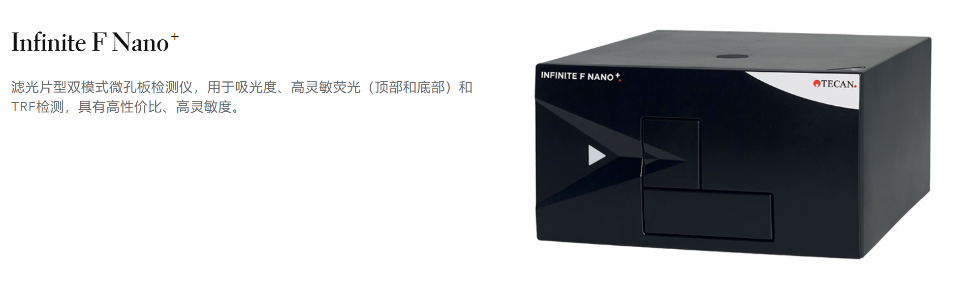 Infinite F Nano+濾光片型雙功能酶標儀 支持光吸收和熒光頂/底讀檢測模式,高靈敏度和極高性價比,除常規檢測外,還支持 均相時間分辨熒光HTRF 檢測。